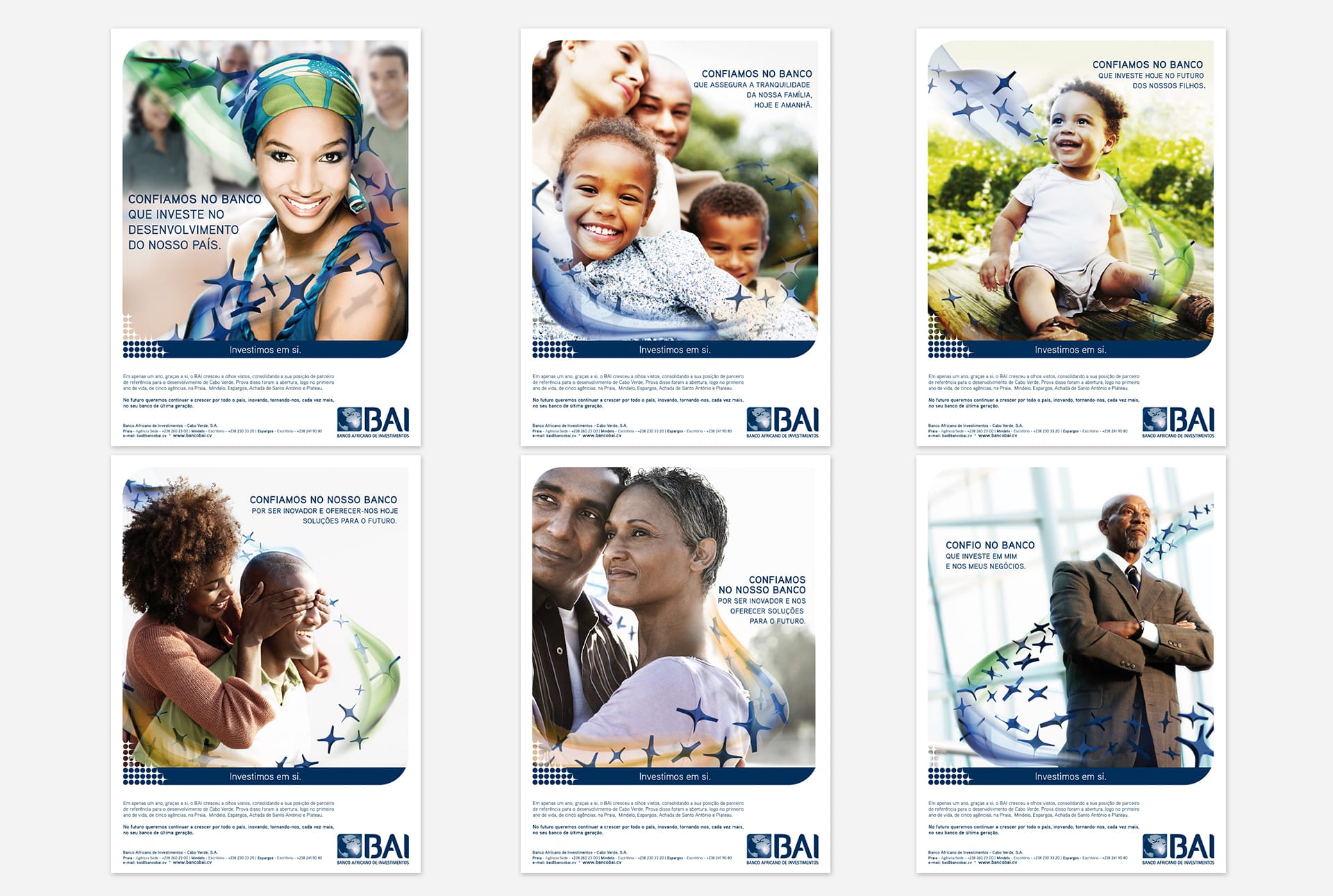 O BAI, Banco de Cabo Verde de origem angolana, propôs-nos a elaboração da imagem para as suas agendas anuais, campanhas de produto e institucionais.
